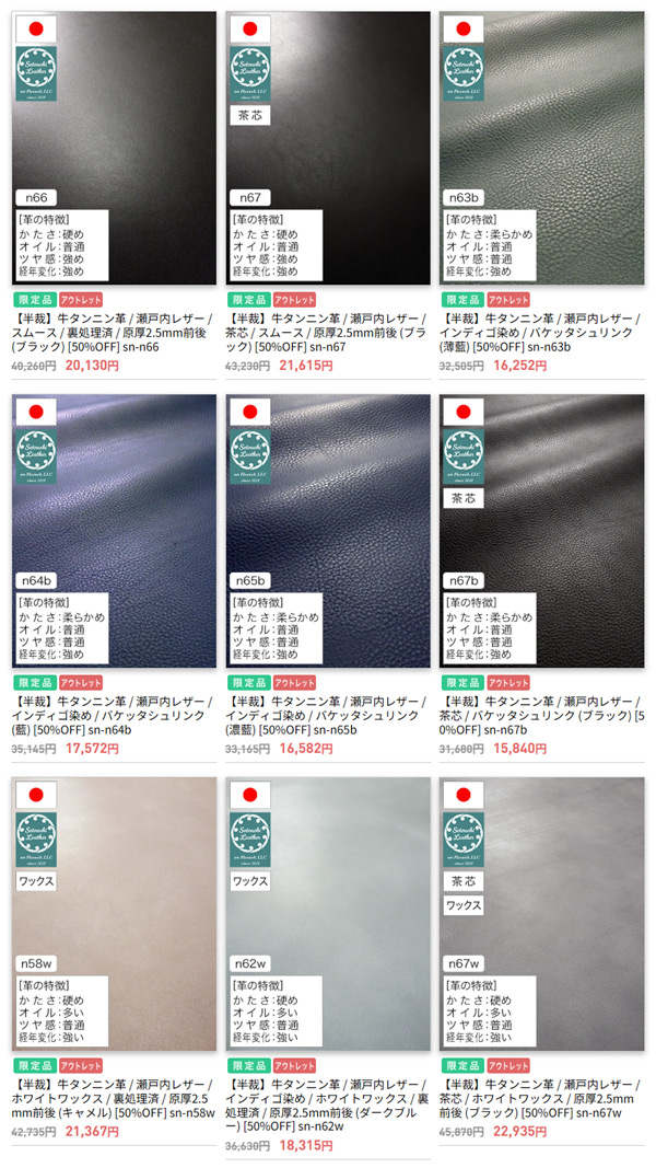 瀬戸内レザーが大量入荷しました。