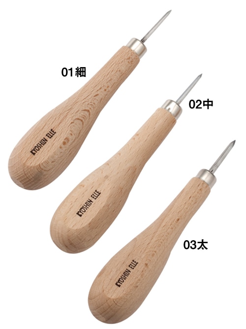 刃全体に焼き入れを施し、厚い革でも曲がることなくスムーズに通ります。