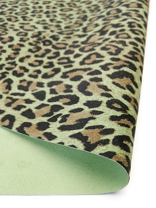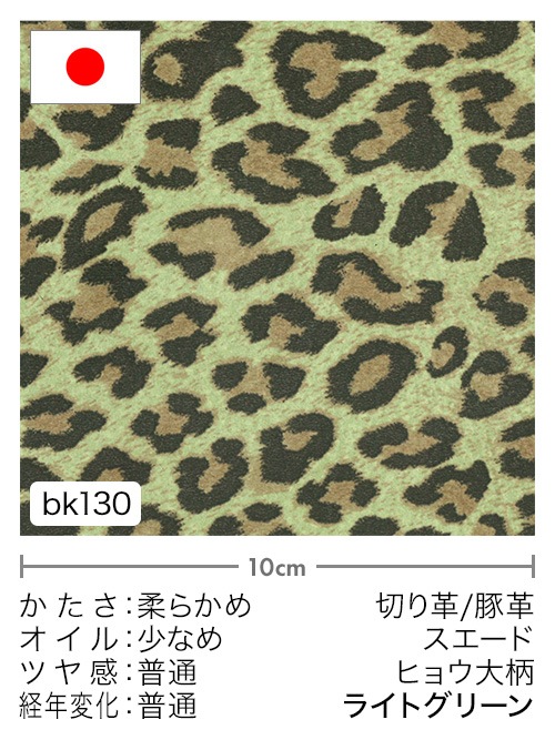【切り革】豚革 / スエード / ヒョウ大柄 (ライトグリーン)