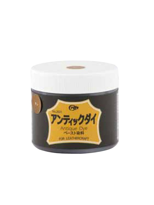 カービング・スタンピングした凹部分を彩色し、陰影を付け立体感をより強調する“アンティック仕上げ”に使用します。ワックスや樹脂を含んだ染着性の高いペースト染料です。