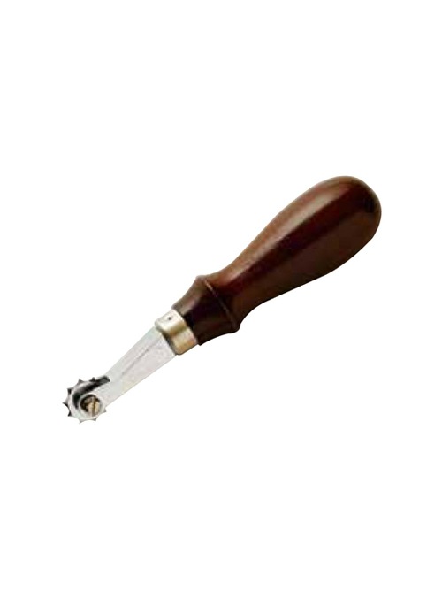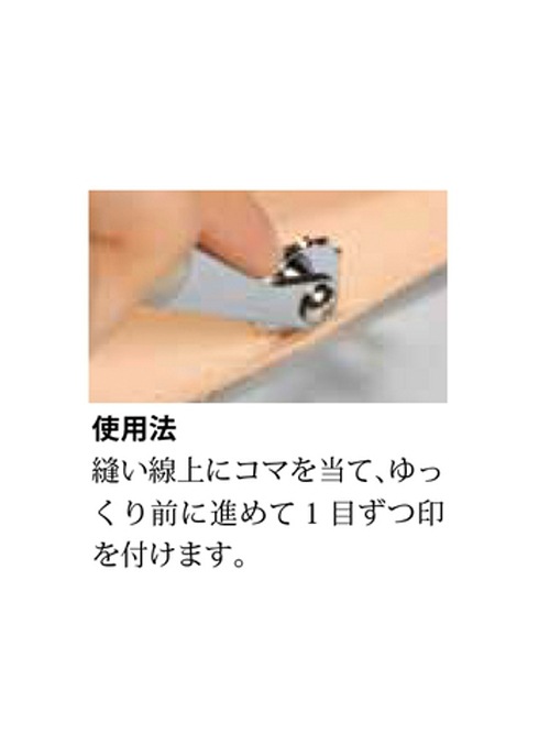 菱ギリで手縫い穴をあける目安の印を、縫い線上に等間隔に付けます。また木槌で馴染ませた縫い目を押えて強弱を付け、美しく整えることができます(オーバーステッチャー)