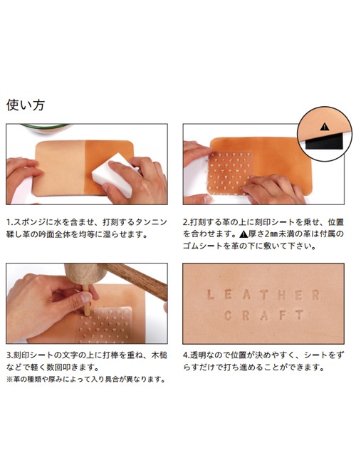 ・刻印シートはタンニン鞣し革専用です。クロム鞣し革には打刻できません。