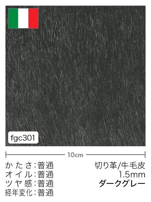 イタリア産の牛毛皮をダークグレーに染色しています。