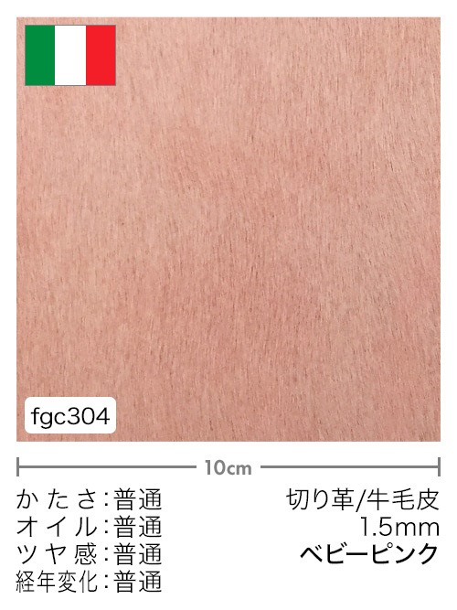 イタリア産の牛毛皮をベビーピンクに染色しています。