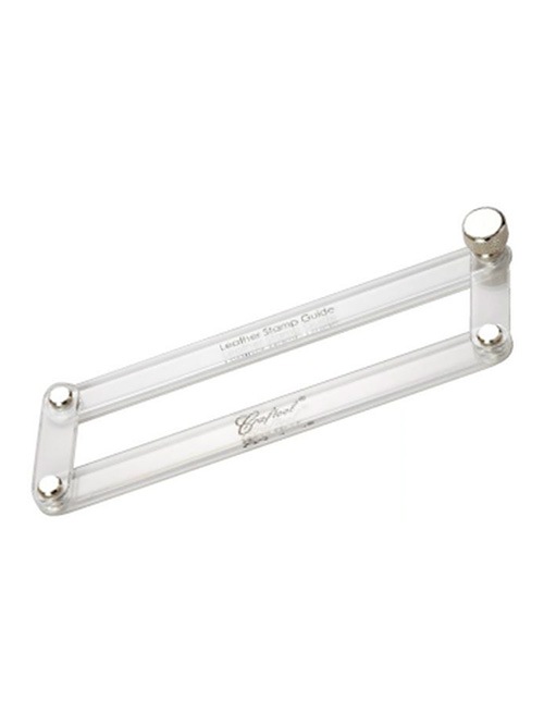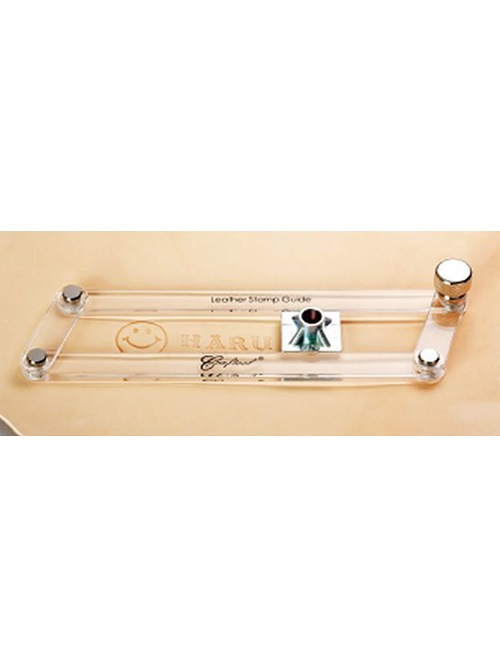 絵刻印や英数字刻印に合わせて右上のネジを調節してガイドを固定すれば、革の位置を確認しながら打刻ができます。