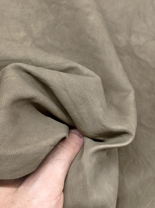 このヤギ革は洗いをかけて、全体的にナチュラルなシワ加工をしています。