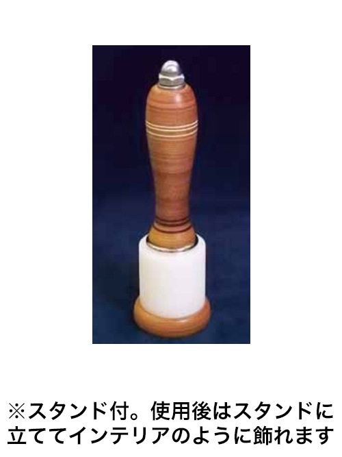 エル特製ラウンドモールが、一枚一枚革を積み重ねた積革グリップに大変身。どこまでも滑らかな手触りでスタンドまでも積革というこだわりのイッピンです。Sサイズはシェリダンスタイルカービング等の繊細な作業に、また女性にも優しいコンパクトサイズです。
