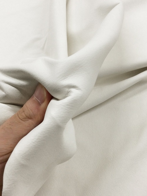 この牛クロム革は、オイル仕上げのため柔らかでしっとりとした質感です。撥水加工が施されているので、レザーウェアや大きめの鞄にも向いています。