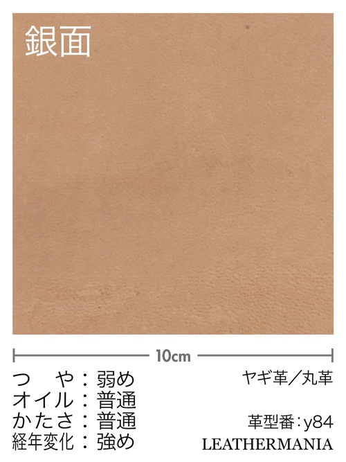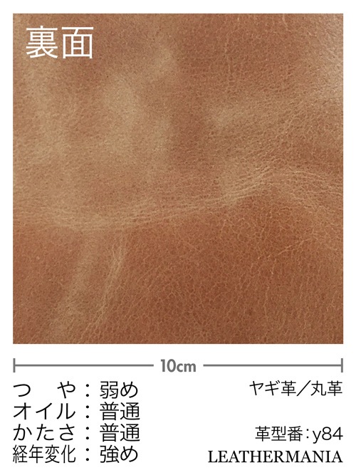このヤギ革は、タンニンなめしのタンニン革です。銀面をサンドペーパーで削り味を出しています。裏面はビンテージ風の裏処理済を施しているので、両面使いが楽しめる革です。色違いの、ブラック、チョコ、キャメル、ナチュラル、ダークブラウン、ダークグレーもあります。