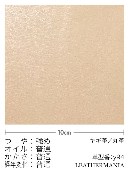 このヤギ革は上品な光沢のあるスムースレザーです。