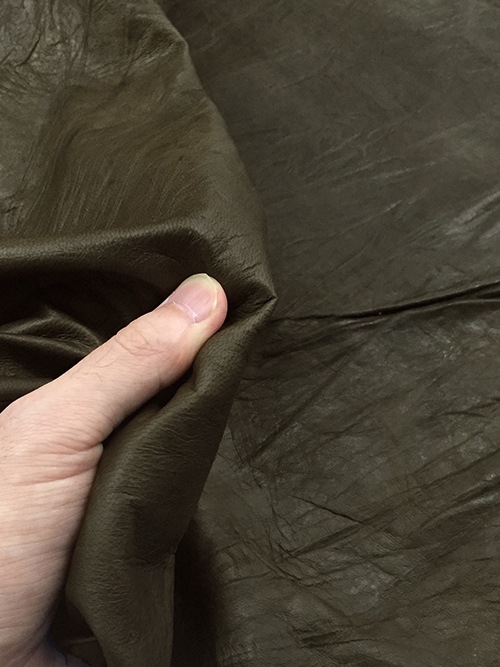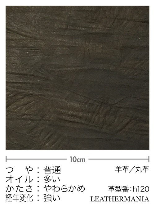 この羊革は、味のあるビンテージ仕上げのオイルレザーです。色違いのキャメルもあります。