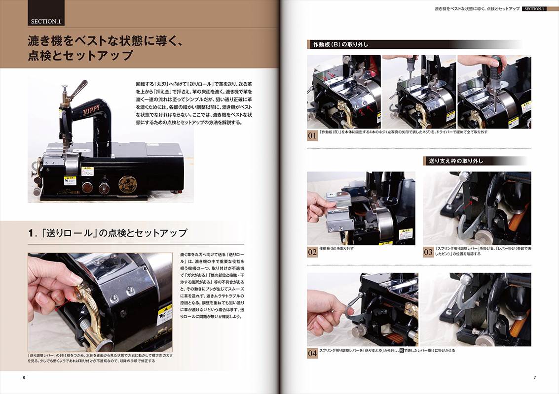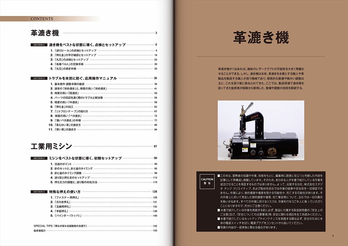 革スキ機と工業用ミシンは、どちらも1台を備えていれば趣味のレザークラフトの可能性を大きく飛躍させてくれます。しかし、これらの便利な機械は本来、製品の製造現場で職人が使用する機械であり、簡易的な整備や細かい調整・セットアップ等は、その職人や専門業者の手に委ねられてきました。このため実際に革スキ機や工業用ミシンを入手したものの、本来の性能を上手く引き出しきれず、“宝の持ち腐れ”となっている方も少なくありません。また、製品に付属する取扱説明書自体も簡素なため、自らの手で込み入ったメンテナンス・調整をしたいと思っても上手く行かない場合もあります。さらには、整備や調整をプロに依頼したくとも、居住するエリアによっては近くに頼れるプロが居らず、いざ整備や調整を頼みたくてもなかなか頼めないといった悩みもあります。本書はそんな前述の内容に該当する、ある程度のことであれば自らの手で解決したい、プロに頼りたくても頼れないといったレザークラフターに向けた、革スキ機と工業用ミシンの上級セットアップおよび、これらを扱う上で有用な情報を数多く掲載した一冊です。
