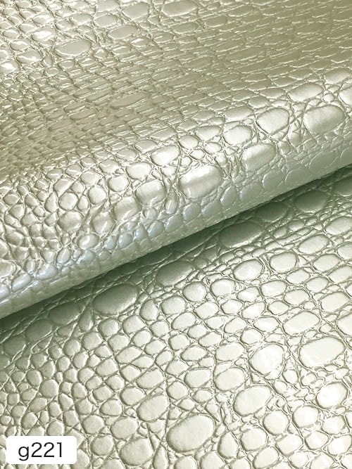 【半裁】牛革クロム鞣し / エナメル / ワニ型押し / 1.2mm (ペールグリーン) [50%OFF]