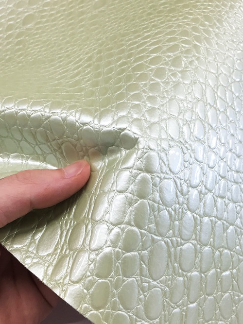 この牛革はエナメル加工とワニの型押しを施したレザーです。