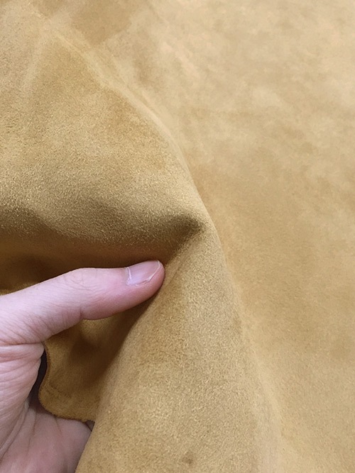 このヤギ革は、床面をサンドペーパーで起毛させたスエードレザーです。
