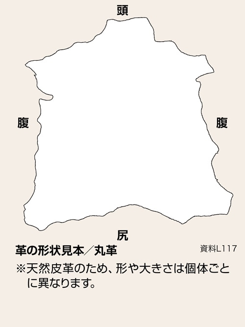 ・天然皮革のため傷、穴、シワ、擦れ、加工の跡、厚さの変化、汚れなどがある場合があります。形、大きさは全て異なります。
