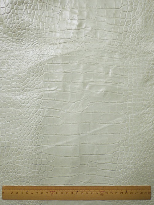 【半裁ハーフ】牛クロム革 / ワニ型押し / 揉みシワ / 1.0mm (オフホワイト) [50%OFF]