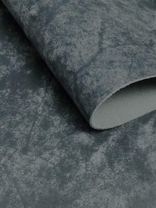 牛ショルダーで革の仕上げ方法はプエブロやマルゴーと同種です。まだら模様に銀スリ加工を施したスクラッチレザーのため芸術的でアンティークな風合いの特徴があります。使い込むとマット調からツヤのあるスムース調へと経年変化していく、独特なエイジングも味わえます。小物からバッグまで幅広くカラーリングを楽しむ作品に向いています。