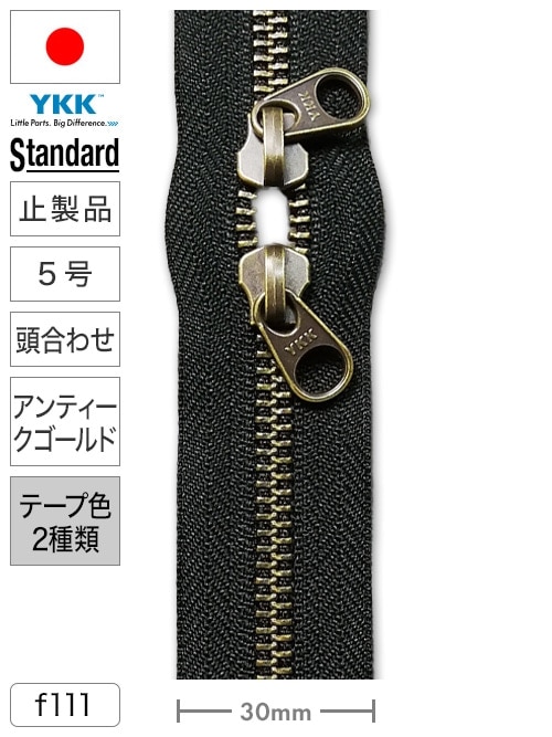 【止製品】ファスナー / スタンダード / 5号 / 頭合わせ / アンティークゴールド (テープ2色) [YKK®]