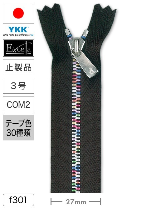 【止製品】ファスナー / エクセラ®ライト / 3号 / COM2 (テープ30色) [YKK®]