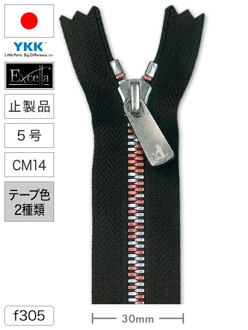 【止製品】ファスナー / エクセラ®ライト / 5号 / CM14 (テープ2色) [YKK®]