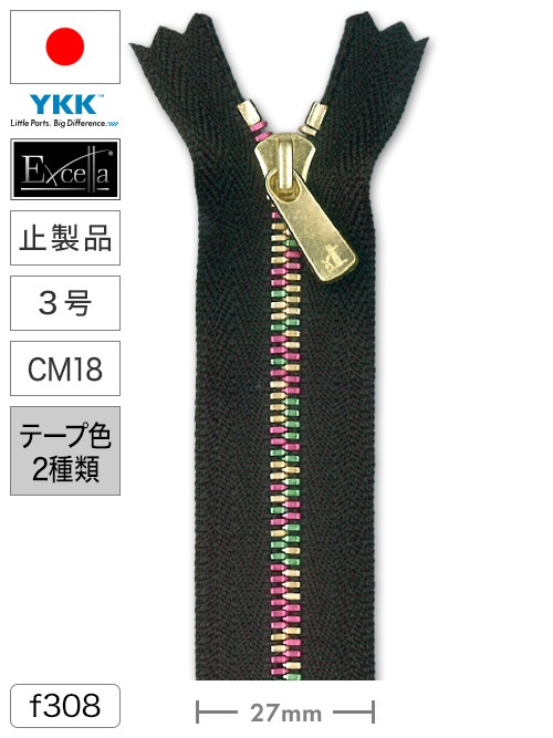 【止製品】ファスナー / エクセラ®ライト / 3号 / CM18 (テープ2色) [YKK®]