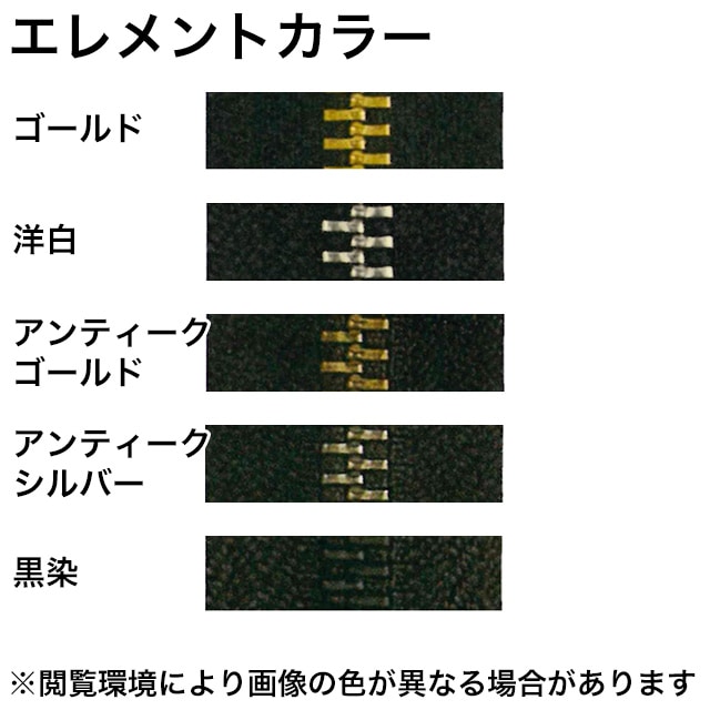 エレメントカラーは金属本来の色を活かしているため、厚手の生地や金属の素材感を生かしたデザインに向いています。