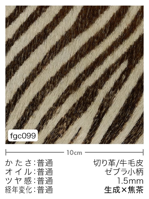 【切り革】牛毛皮 / ゼブラ小柄 / 1.5mm (生成×焦茶)