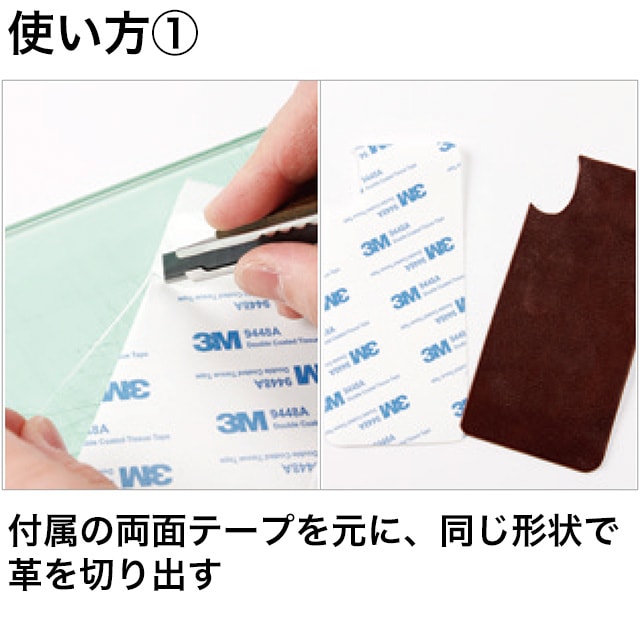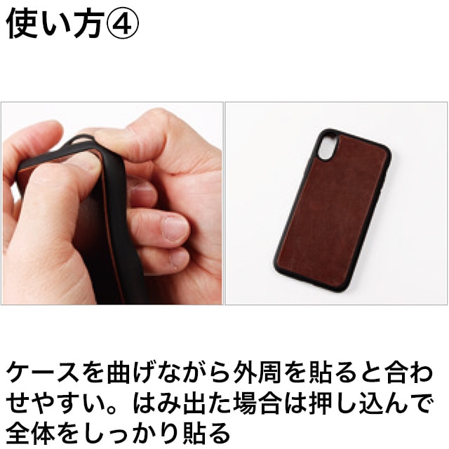 好きな革を貼り付けるだけで簡単にオリジナルiPhoneケースが作れるケースです。付属の両面テープを型紙にして革を切り出したら、両面テープをケースに貼り、その上から革を貼ればできあがり。ケースには段差が付いているので、一体感ある仕上がりになります。貼付け面は強度の高いポリカーボネート、側面は柔軟性のあるTPUを使用しているため、衝撃に強いながらも軽くて脱着が容易なのも魅力です。ワイヤレス充電やApple Payもそのまま使えます。
