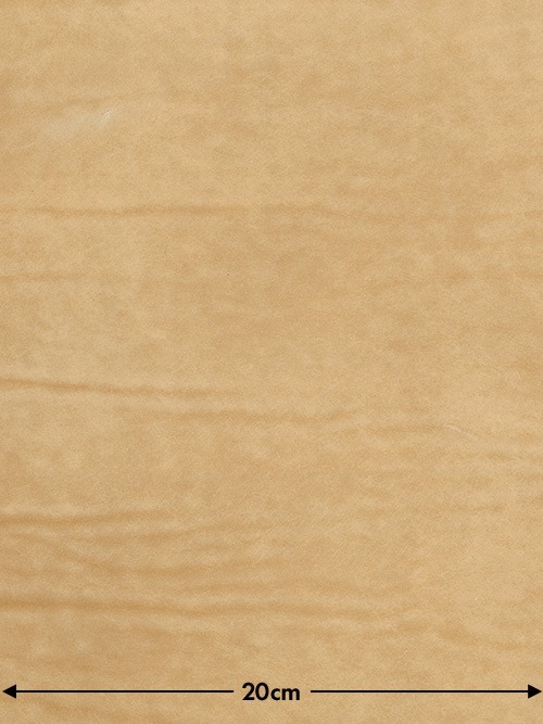 牛ショルダーで革の仕上げ方法はプエブロやマルゴーと同種です。まだら模様に銀スリ加工を施したスクラッチレザーのため芸術的でアンティークな風合いの特徴があります。使い込むとマット調からツヤのあるスムース調へと経年変化していく、独特なエイジングも味わえます。小物からバッグまで幅広くカラーリングを楽しむ作品に向いています。