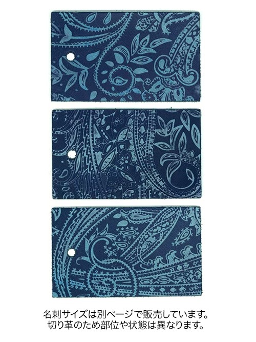 【切り革】牛革タンニン鞣し / セトウチレザー / インディゴ染め / ペイズリー柄 (濃藍)