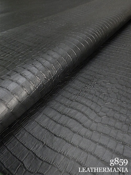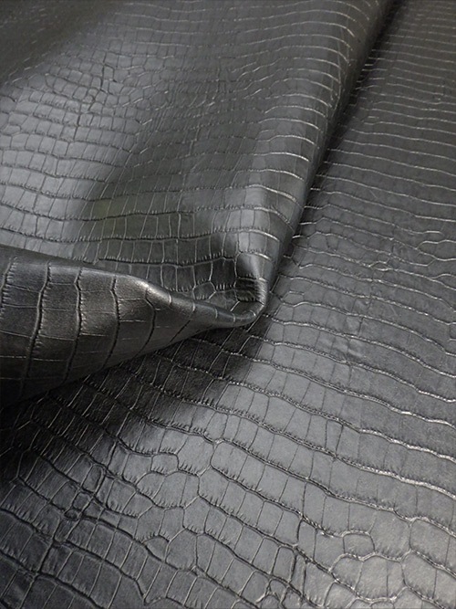 【半裁】牛クロム革 / ワニ型押し / 1.3mm (ブラック)