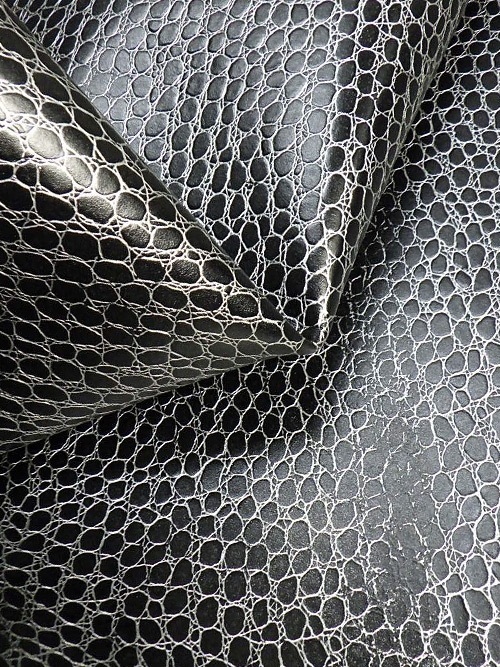【半裁】牛クロム革 / ワニ型押し / 2.0mm (ブラック×シルバー)