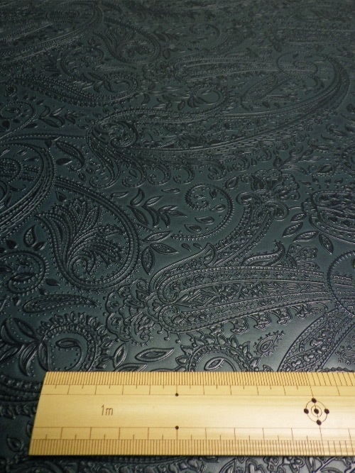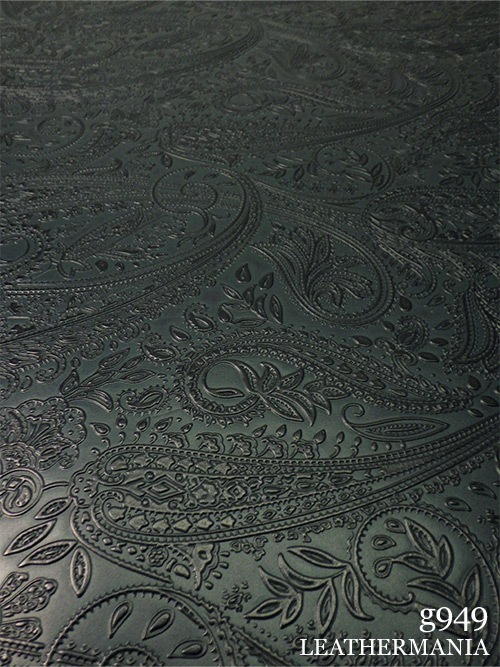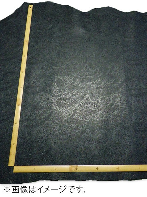 【半裁】牛クロム革 / ペイズリー柄型押し / 1.6mm (アンティークブラック)