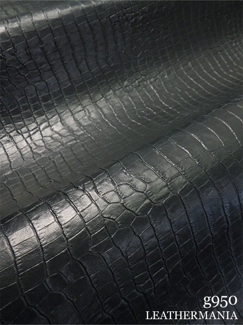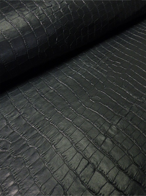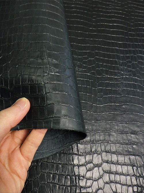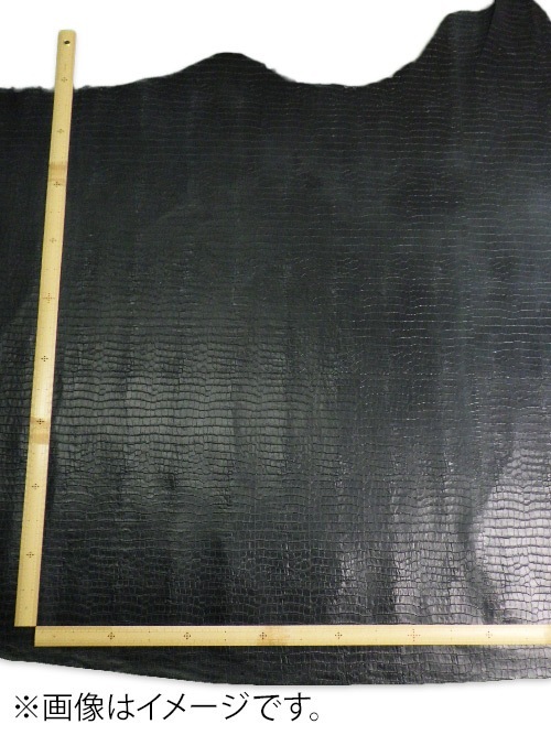 【半裁】牛クロム革 / ワニ型押し / 1.1mm (ブラック)
