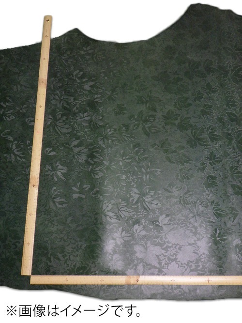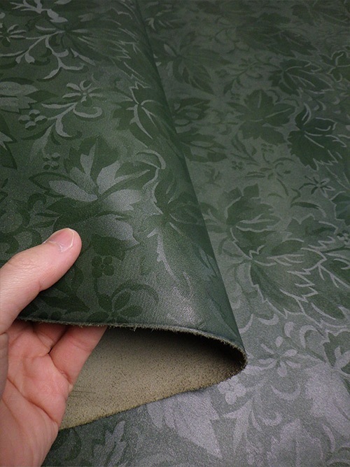 【半裁ハーフ】牛クロム革 / 植物柄型押し / 1.2mm (グリーン)