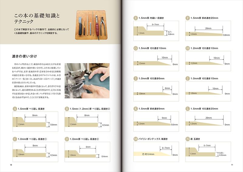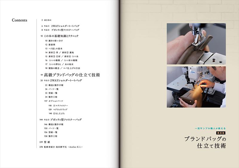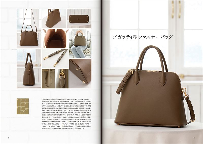 バッグのことを知り尽くした一流のプロだからこそ分かる、細やかな知識と技術を、本のすみずみまで豊富に詰め込みました。工程の一つひとつにまで気を配った緻密な設計、型紙の工夫、効率的な手順、精巧なスキや芯材による素材のコントロール、デザインと機能性のバランス、美しい立体と曲線の出し方、めりはりをつけた補強による耐久性の向上。実際にバッグを仕立てる工程をつぶさに追いながら、その膨大な情報を余すことなく解説します。特定のバッグを完成させるまでのハウツー本としてだけではなく、趣味として、さらに仕事としてバッグ作りを行なう方々に、あらゆるシーンで役立つ心強い指南書として読んでいただける内容になっています。