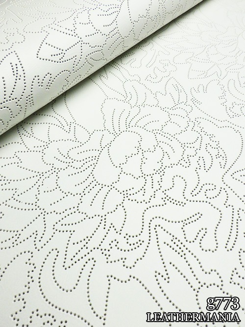 【半裁】牛クロム革 / パンチング / 花柄 / 1.4mm (ホワイト)