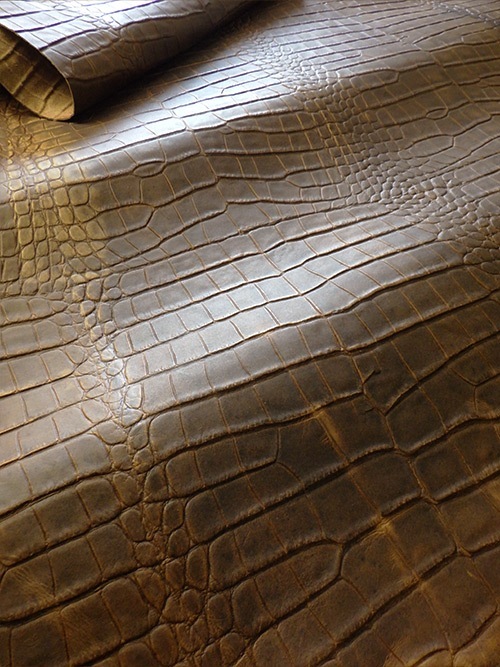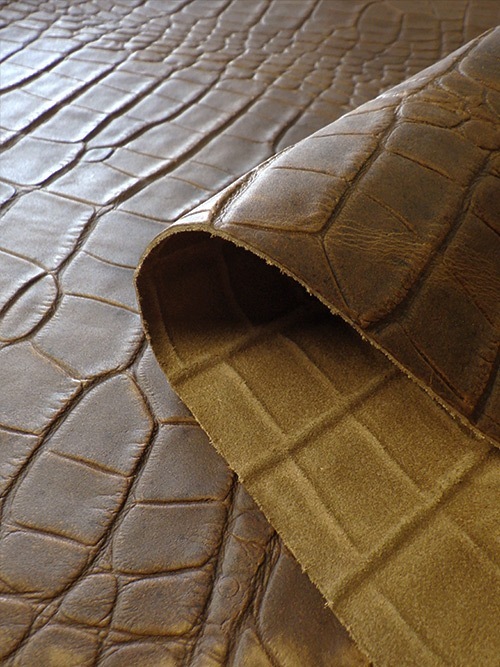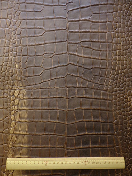 価格:140円→70円 ds単価(税抜)形状:半裁ハーフ種類:ワニ型押し / プルアップ厚さ:1.5mm前後色 :キャメル×ブラウン