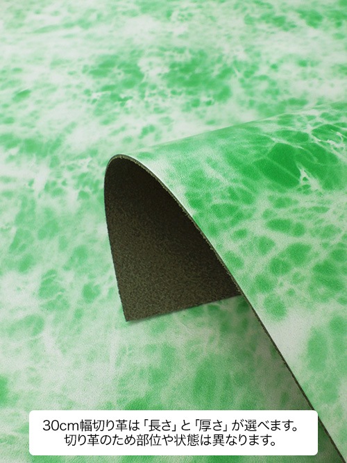 【30cm幅切り革】牛タンニン革 / プレミアムレザー / マーブル (白×緑)