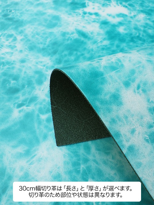 【30cm幅切り革】牛タンニン革 / プレミアムレザー / マーブル (白×青緑)