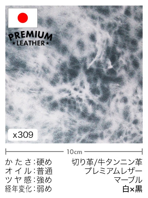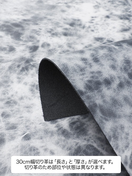 【30cm幅切り革】牛タンニン革 / プレミアムレザー / マーブル (白×黒)