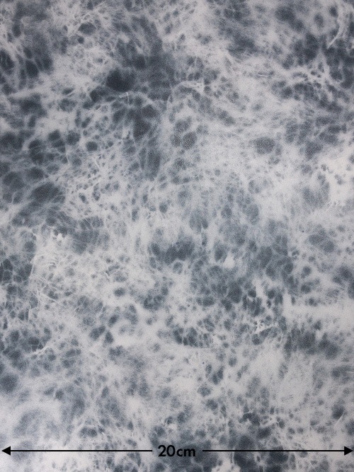 この牛タンニン革はフルグレインをベースにしています。「ホワイトのベース染色」と「板フノリを用いたマーブル染色」が特徴です。オリジナルの染色技法により発色と濃淡を最大限に活かすことで、エレガントな大理石の模様をリアルに表現したレザー。