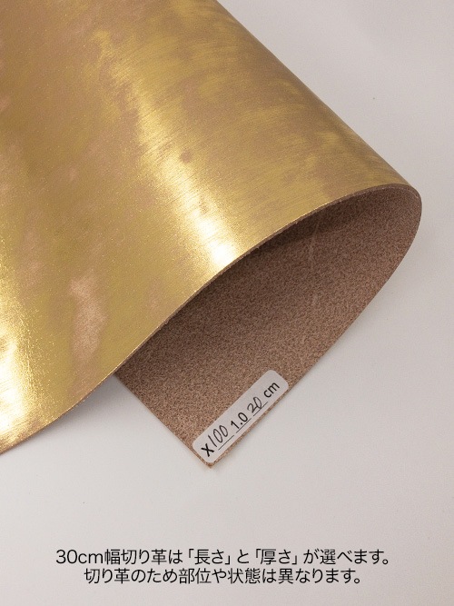 【30cm幅切り革】牛タンニン革 / 栃木レザー / スクラッチ (ナチュラル×金)