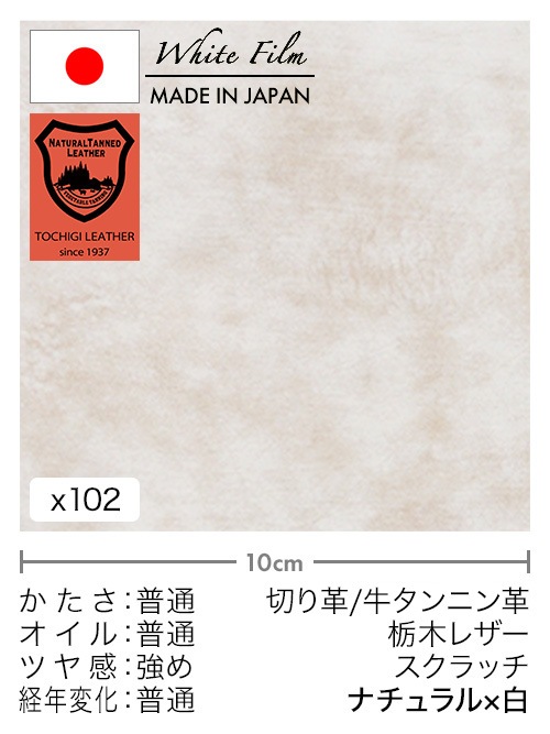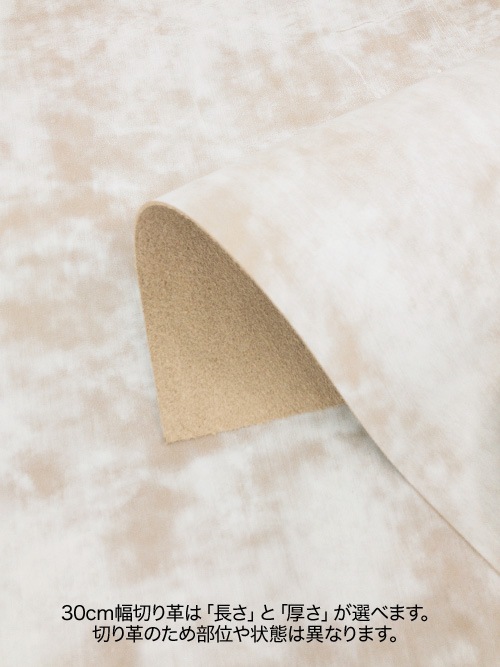 【30cm幅切り革】牛タンニン革 / 栃木レザー / スクラッチ (ナチュラル×白)
