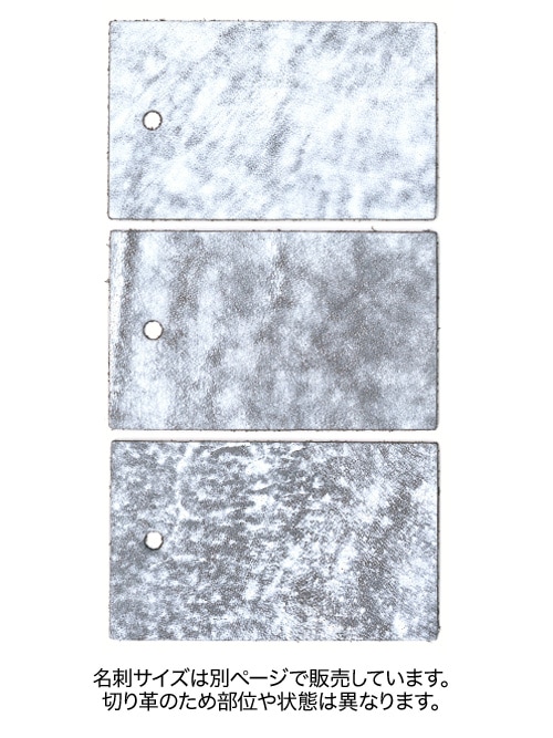 この牛タンニン革は、黒下地の銀面に白の箔押しとスクラッチ仕上げを施した、アーティスティックな素材です。