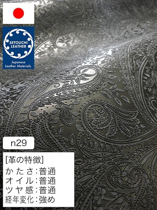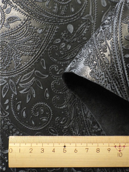 【半裁】牛タンニン革 / 瀬戸内レザー / ペイズリー柄 / 1.0mm (ブラック)