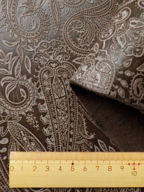 【半裁】牛タンニン革 / 瀬戸内レザー / ペイズリー柄 / 1.8mm (ダークチョコ)
