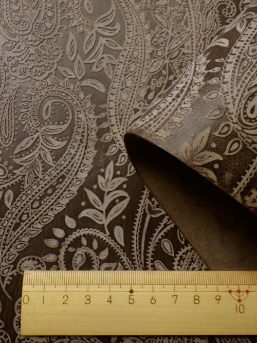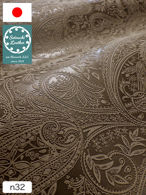 【半裁】牛タンニン革 / 瀬戸内レザー / ペイズリー柄 / 1.5mm (チョコ)