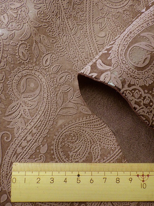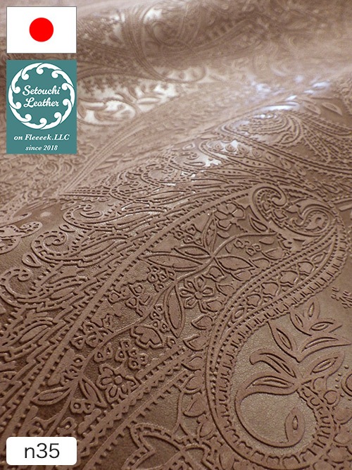 【半裁】牛タンニン革 / 瀬戸内レザー / ペイズリー柄 / 1.0mm (ブラウン)